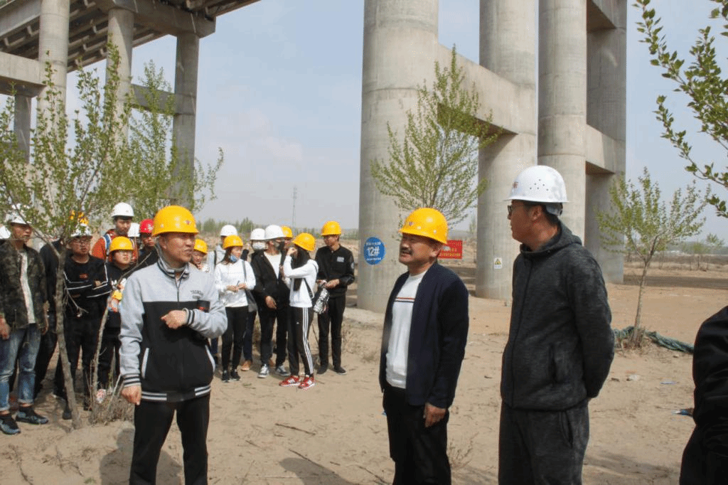 在公司的统一安排下,4月22日上午,杨国栋老师首先对本次实习做了动员工作,就安全及实习过程中的注意事项等诸方面做了充分的强调。天骄路桥210国道在建罕台川大桥施工现场是本次专业认知实习的第一站,天骄路桥白福祥书记热情接待了大家。施工现场由专业的技术总工就桥梁的类型、梁的架设方法、桥墩浇筑过程、箱梁和T梁的预制、预应力钢筋的张拉、桥梁预制法和整体浇筑法的施工工序等方面详细的做了介绍,并耐心解答了实习过程中员工提出的各种问题,现场气氛热烈,掌声此起彼伏。