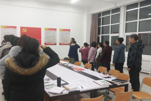 首先,讨论了刘奈华、李国金2位同学是否能够按期转正,讨论了董彩环、刘旭照、王慧玲、乔震、迟海琳5位同学是否能够成为中共预备党员,会议严格按照中国共产党发展党员工作流程进行,与会有投票权的正式党员为9名,通过票决的方式一致通过刘奈华、李国金2位同学按期转正,吸收董彩环、刘旭照、王慧玲、乔震、迟海琳5位同学成为中共预备党员;然后,集体学习了《中国共产党章程(修正案)》;最后,所有与会党员重温入党誓词以及党员党费交纳工作。