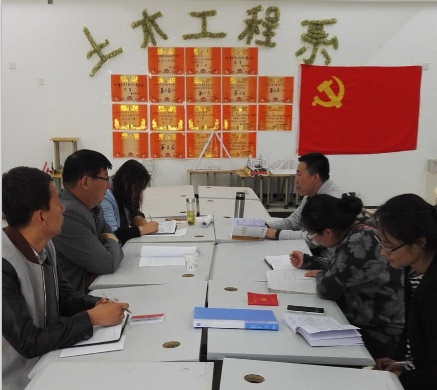 土木工程系(第三党支部)于5月12日下午4:00在土木楼201室集中学习“两学一做”相关精神。公司党委杨书记和系部全体教师党员参加此次学习,学习会议由第三党支部书记商艳主持。