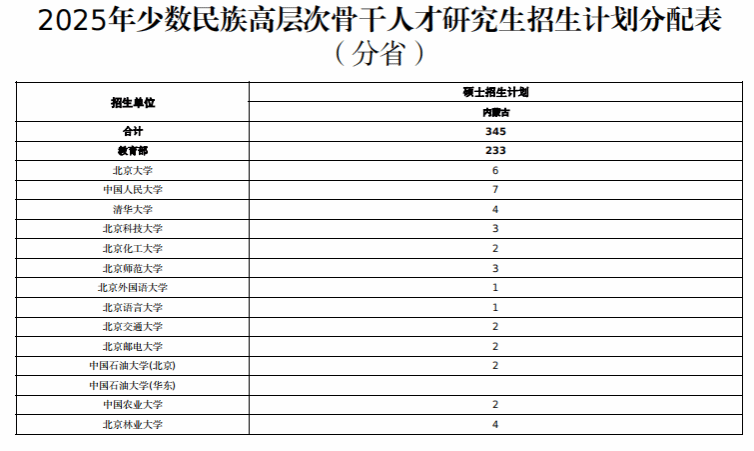 教育部出台《2025年少数民族高层次骨干计划人才研究生招生通知》,附2025年少干计划名额分配表。但去年的名额表发布的时间晚点。