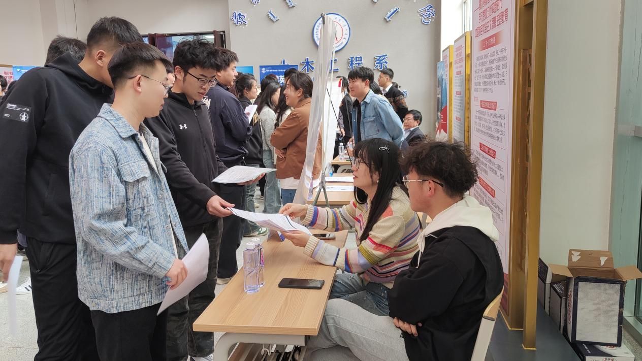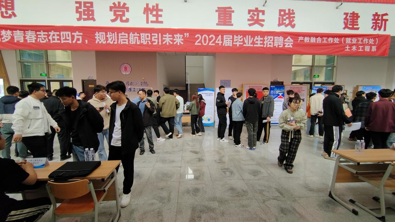 为深入学习贯彻党的二十大精神,搭建用人单位和毕业生交流平台,抓住春季招聘关键期,拓宽我系毕业生就业渠道,把握优质就业岗位,进一步推动和提升员工就业质量,土木工程系于4月2日下午在土木楼成功举办了以“春季攻坚促就业,规划启航职引未来”为主题2024届毕业生春季土木专场招聘会。本次招聘会由产教融合处主办,土木工程系承办,共邀请21家优质单位前来招贤纳士,包括陕建五建集团有限公司、内蒙古兴泰建设集团,内蒙古满世煤炭集团股份有限公司、鄂尔多斯乌兰发展集团有限公司等行业知名企业,总计提供岗位120余个,吸引约200多名毕业生参加。