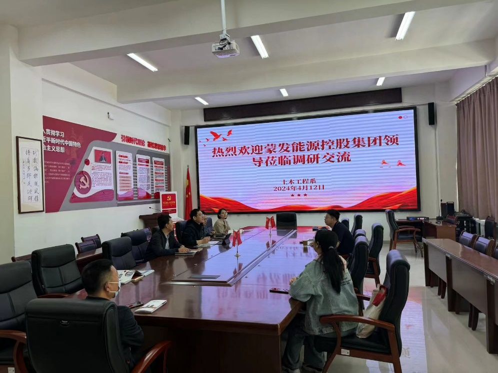 2024年4月12日上午,蒙发能源控股集团人力资源部人事负责人赵世忠来我系进行考察交流,土木工程系副书记武景龙、副主任许波及矿物资源工程、土木工程专业教师参会。