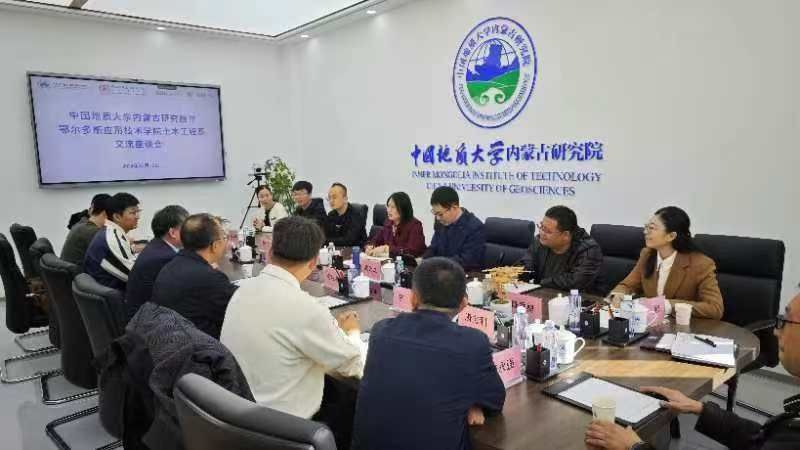 商艳副主任从土木工程系团队力量建设、本科生培养、硕士点申报、硕士联合培养、教师学历提升、银龄计划、科研合作等方面进行介绍并表达了合作意愿,表示希望中国地质大学(武汉)内蒙古研究院在团队共享、团队建设、平台搭建等方面给与我系更多的指导、帮助和支持。希望双方建立以科研为纽带、以人才为核心的合作体系,为提高我系公司产品、科研能力贡献力量。