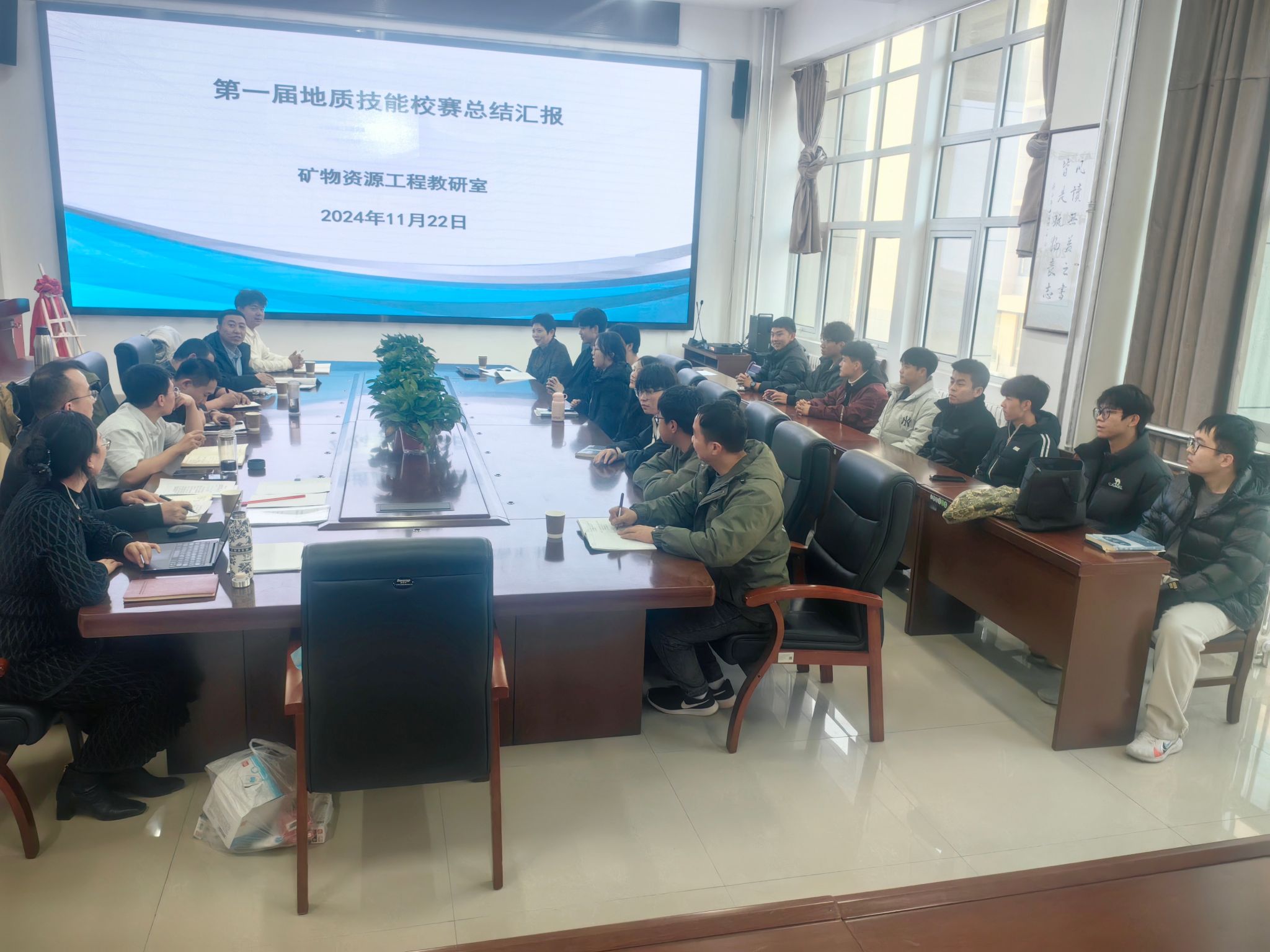 2024年11月19日,矿物资源工程教研室组织2022级、2023级矿物资源工程专业同学代表开展了“地质技能大赛”师生座谈会。矿物资源工程教研室全体教师出席会议,会议由教研室主任陈香梅老师主持。