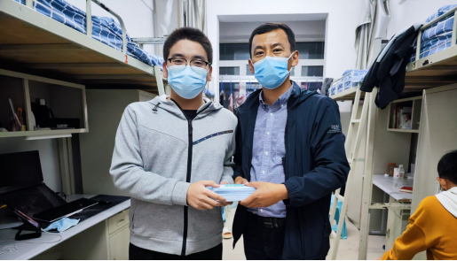 党员教师为员工发放抗疫物品