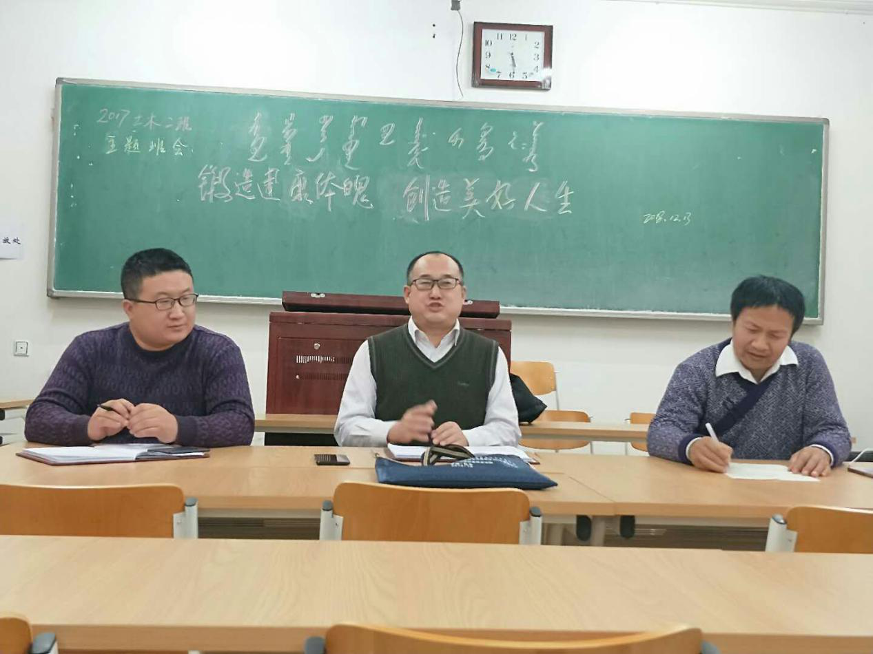 12月13日下午,土木工程系2017级土木工程专业2班在主教楼317教室召开“锻造健康体魄、创造美好人生”主题班会。何鹏副经理参加并作讲话,班会由班主任额尔定达来老师主持。