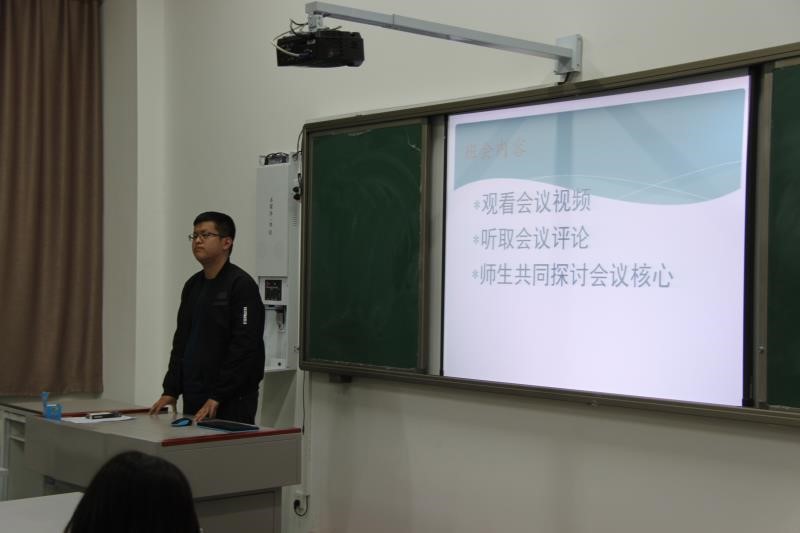 本次班会首先观看了习近平总书记在参加十三届全国人大一次会议内蒙古代表团审议时的相关视频,随后两个班团支书介绍大会主要思想并进行解读,并听取了同学们的会议评论。师生共同讨论了这次会议的核心内容,纷纷表示要切实把思想和行动统一到习近平总书记重要讲话精神上来。最后,商艳副经理对本次班会进行总结,她希望同学们要深刻理解内涵,主动把握实质,在日常生活中对重要讲话精神做到融会贯通。