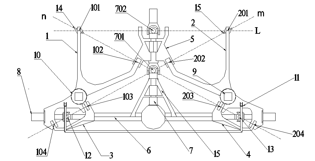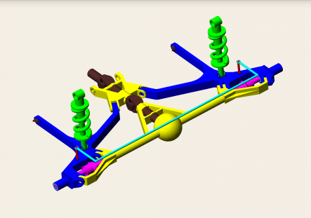 该专利技术是结合上世纪福特F系列“TWIN I-BEAM”前悬架、宝马5系半拖曳臂式后独立悬架、V型推力杆及整体桥式悬架所创造出的新型悬架,取名三轴联动式悬架。三轴联动式悬架,即为由三条轴进行联动作用所组成的悬架系统。这种悬架在严格意义上来讲,属于独立悬架的范畴,但其具有惊人的悬架行程,比起改装后的整体桥式悬架也不遑多让。当汽车采用三轴联动式悬架,左右车轮上下相同幅度跳动时,车轮与车身之间永远不会产生左右偏移。